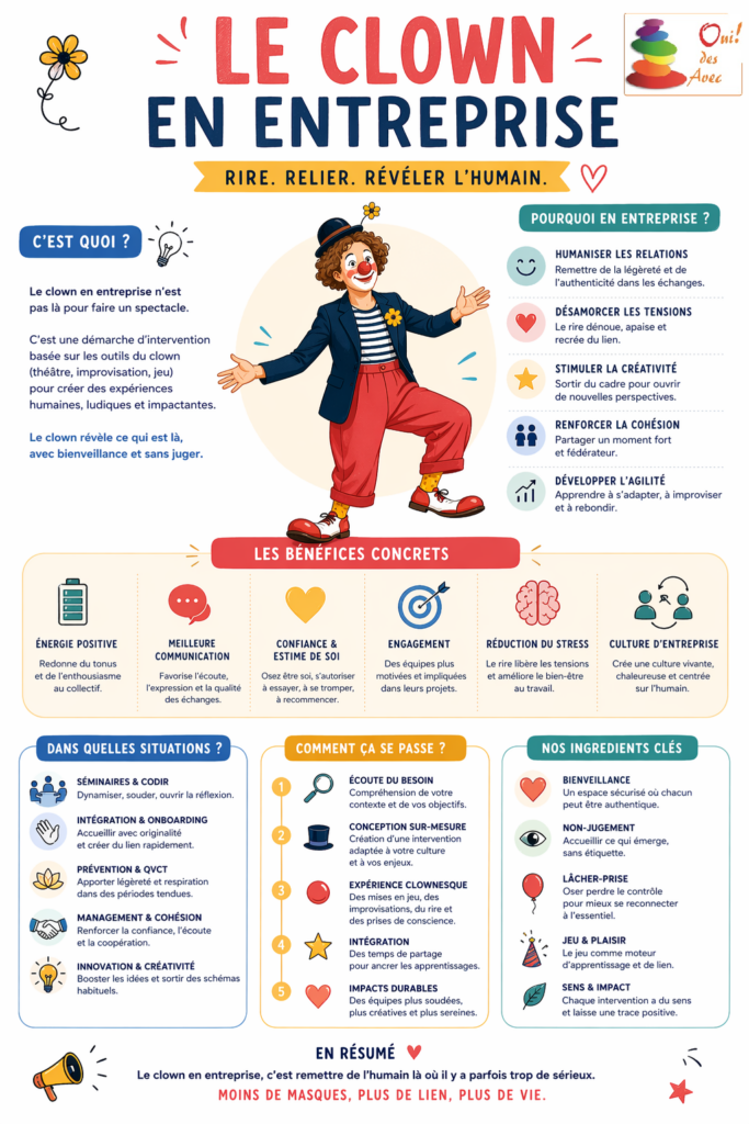 👉 Experte formatrice en communication, j’utilise l’outil du clown de théâtre.